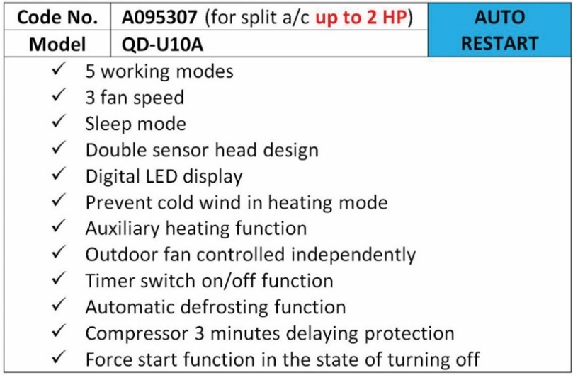 A095307: A/C REMOTE CONTROL+PCB QD-U10A